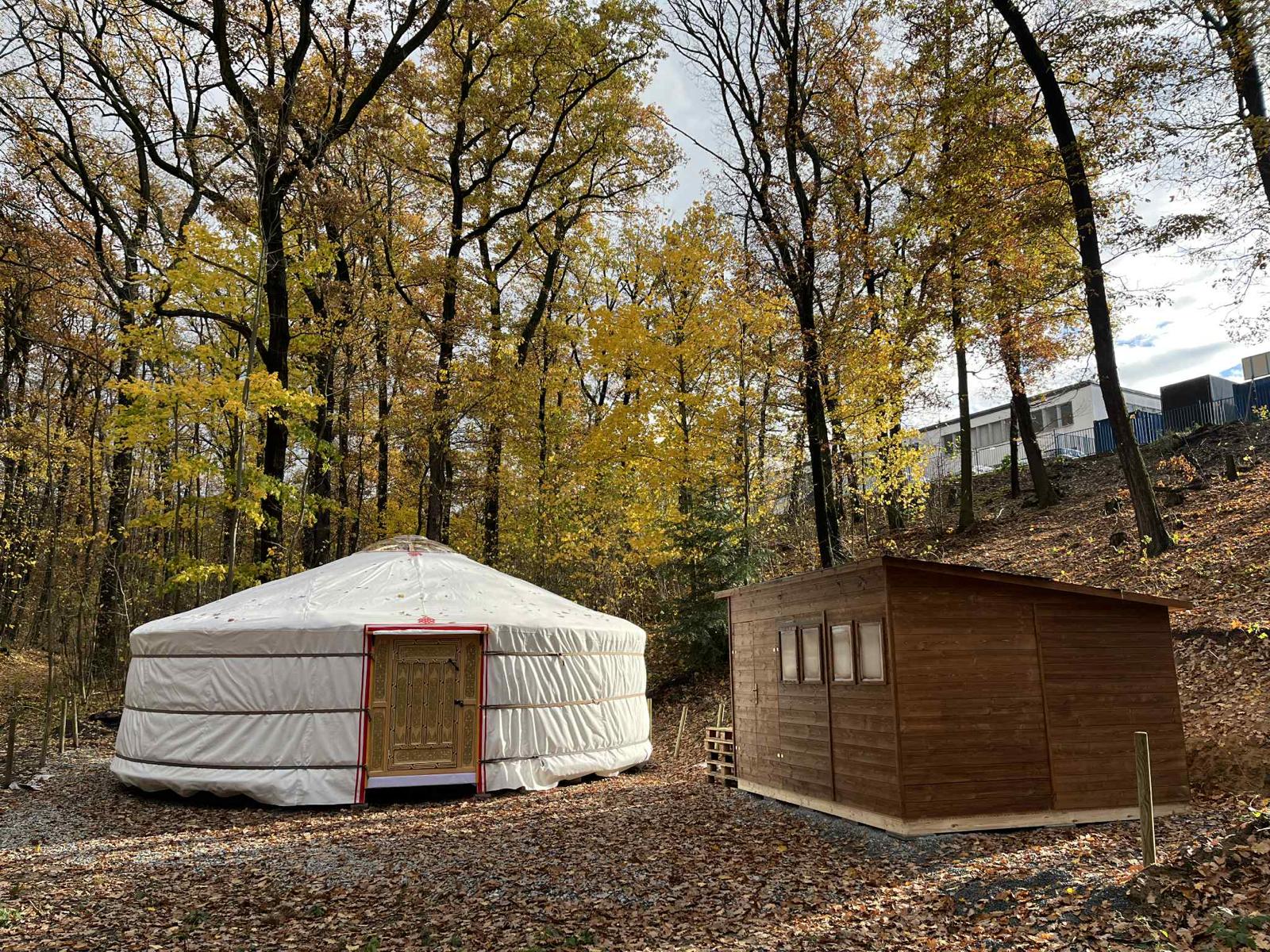 Naše jurtovna stojí v klidném lese, obklopená vysokými stromy, vůní dřeva a měkkým světlem, které dovnitř dopadá skrze kruhový strop. Prostor je jednoduchý, útulný a přirozený – takový, kde se dá snadno nadechnout, tvořit, učit se i odpočívat. Les kolem nás funguje jako živá učebna, hřiště i místo pro zklidnění, které doplňuje jemná atmosféra jurty.